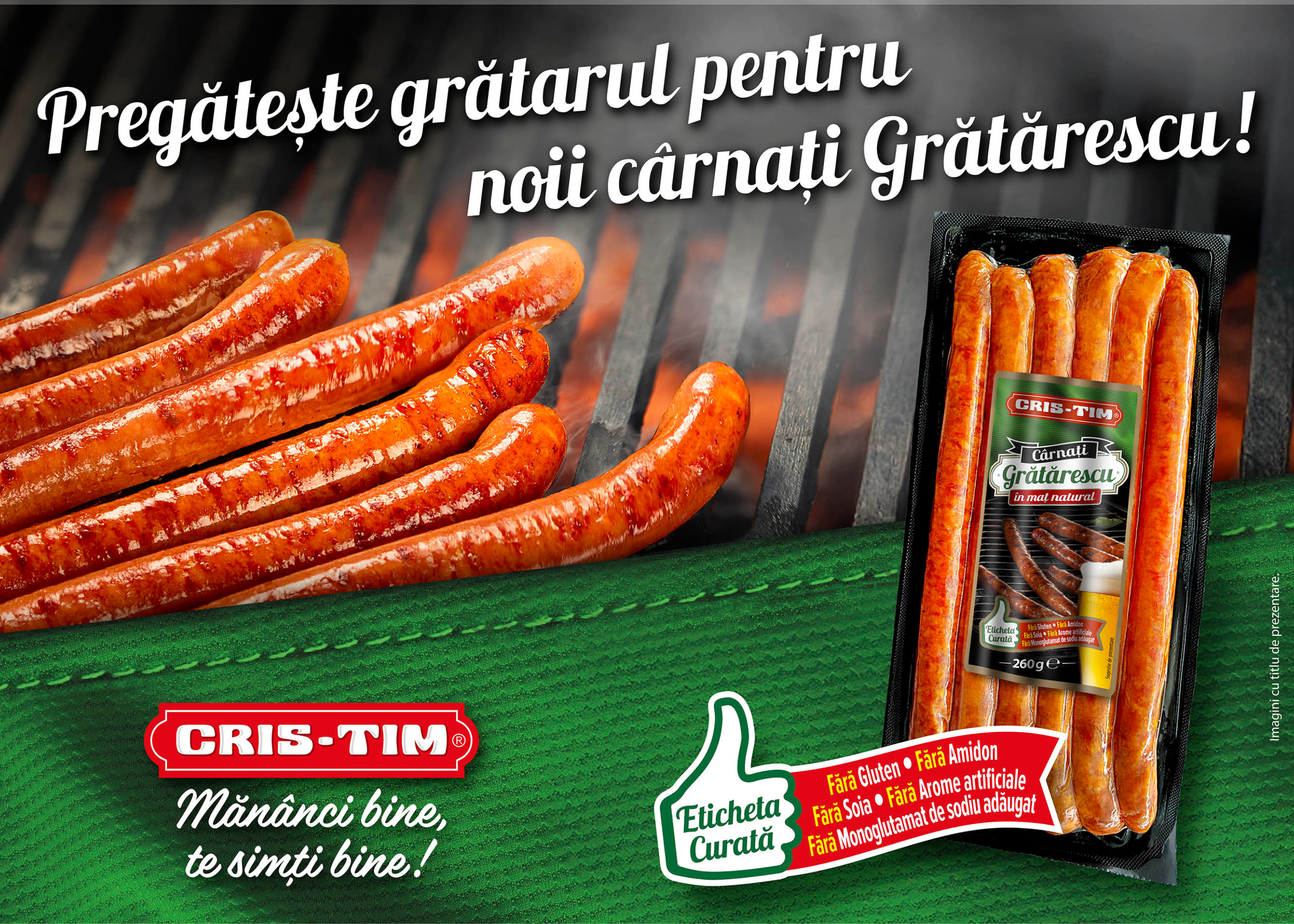 Cârnații Grătărescu se disting prin rețeta lor bazată pe carne fragedă de porc, condimentați cu usturoi și boabe întregi de muștar, afumați lent cu fum natural de lemn de fag și înveliți în membrană naturală, pentru a păstra suculența. Produsul este disponibil la nivel național în marile rețele de retail modern, în comerțul tradițional, în magazinele proprii Cris-Tim și prin e-commerce, în două formate: 260 g ambalat vidat și 1 kg vrac.